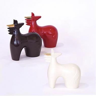 以極簡線條呈現馬的優雅造型,耳畔一綹頸鬃手繪真金,