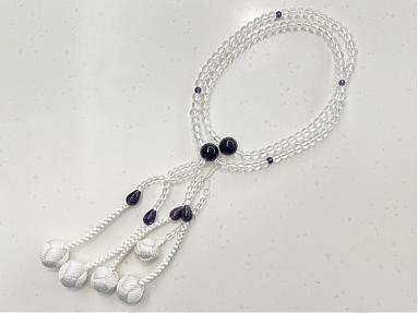 | > 念珠線香 > 女用念珠 > 女用高級念珠-結球(透明水晶-紫) |