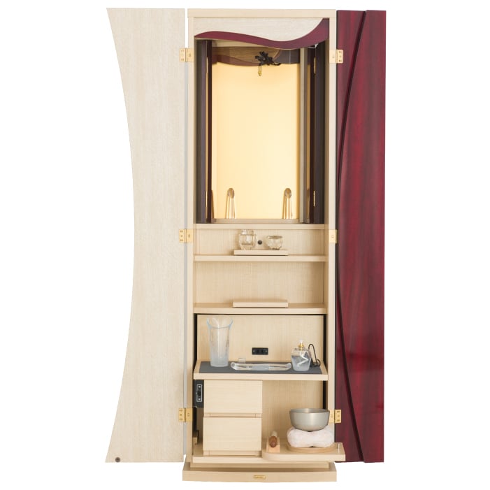 朝露櫥櫃型佛壇 (白色+酒紅色)