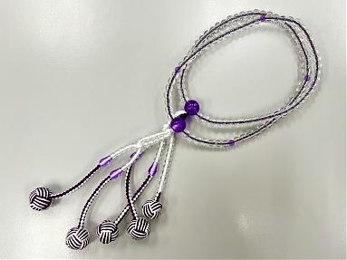 | > 念珠線香 > 女用念珠 > 女用PC念珠(紫色結球)-透明水晶 |