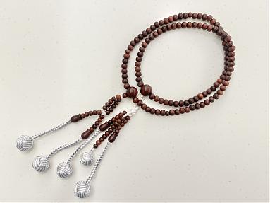 | > 念珠線香 > 女用念珠 > 木質念珠-素引紫檀-彩色結球(M) |