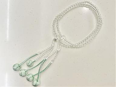 | > 念珠線香 > 女用念珠 > 女用PC念珠(綠色結球)-透明水晶 |
