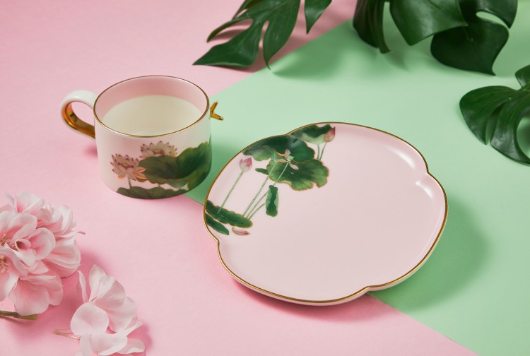 > 送禮專區 > 瓷器_藝術文創系列 > 林玉山-蓮池 一路荷美杯盤組(粉紅) |