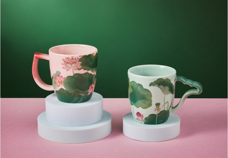 > 送禮專區 > 瓷器_藝術文創系列 > 林玉山-蓮池 荷顏悅色馬克杯(綠) |